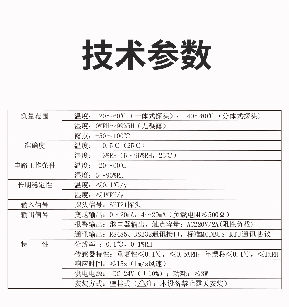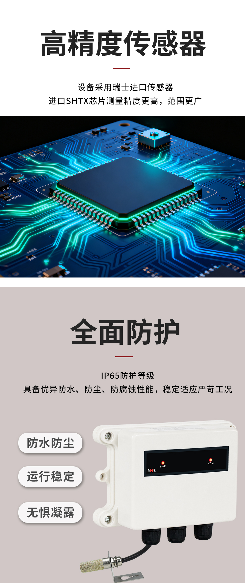虹潤公司是專業(yè)生產(chǎn)環(huán)境監(jiān)測儀表的國家專精特新“小巨人”企業(yè)。生產(chǎn)的一體式溫濕度變送器,具有溫度、濕度、露點高精準的測量與變送,報警繼電器輸出,RS485/RS232通訊,IP65防護等級等特點。產(chǎn)品獲得一種手持式低功耗溫濕度檢測儀、大屏幕溫濕度記錄儀等2項國家發(fā)明專利,主持起草物聯(lián)網(wǎng)智能溫度儀表通用技術條件、冷鏈溫度記錄儀等2項國家標準,以及通信系統(tǒng)多通道數(shù)據(jù)采集控制終端規(guī)范軍用標準,以及現(xiàn)場設備集成等5項智能制造國家標準,參與國際5G標準制定,取得溫濕度儀表等3項相關軟件著作權(quán)。產(chǎn)品廣泛應用于工業(yè)現(xiàn)場、農(nóng)業(yè)大棚、倉儲物流、地下管廊、養(yǎng)殖孵化、配電機房等諸多領域。