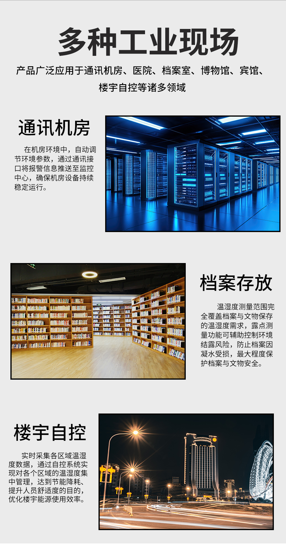 虹潤(rùn)公司是專(zhuān)業(yè)生產(chǎn)環(huán)境監(jiān)測(cè)儀表的國(guó)家專(zhuān)精特新“小巨人”企業(yè)。生產(chǎn)的壁掛式溫濕度控制器,具有溫度、濕度、露點(diǎn)高精準(zhǔn)的測(cè)量,多種輸出類(lèi)型,穩(wěn)定性強(qiáng),RS485/RS232通訊,IP65防護(hù)等級(jí)等特點(diǎn)。產(chǎn)品獲得一種手持式低功耗溫濕度檢測(cè)儀、大屏幕溫濕度記錄儀等2項(xiàng)國(guó)家發(fā)明專(zhuān)利,主持起草物聯(lián)網(wǎng)智能溫度儀表通用技術(shù)條件、冷鏈溫度記錄儀等2項(xiàng)國(guó)家標(biāo)準(zhǔn),通信系統(tǒng)多通道數(shù)據(jù)采集控制終端規(guī)范軍用標(biāo)準(zhǔn),以及現(xiàn)場(chǎng)設(shè)備集成等5項(xiàng)智能制造國(guó)家標(biāo)準(zhǔn),參與國(guó)際5G標(biāo)準(zhǔn)制定,取得溫濕度儀表等2項(xiàng)相關(guān)軟件著作權(quán)。產(chǎn)品廣泛應(yīng)用于工業(yè)現(xiàn)場(chǎng)、農(nóng)業(yè)大棚、倉(cāng)儲(chǔ)物流、地下管廊、養(yǎng)殖孵化、配電機(jī)房等諸多領(lǐng)域。