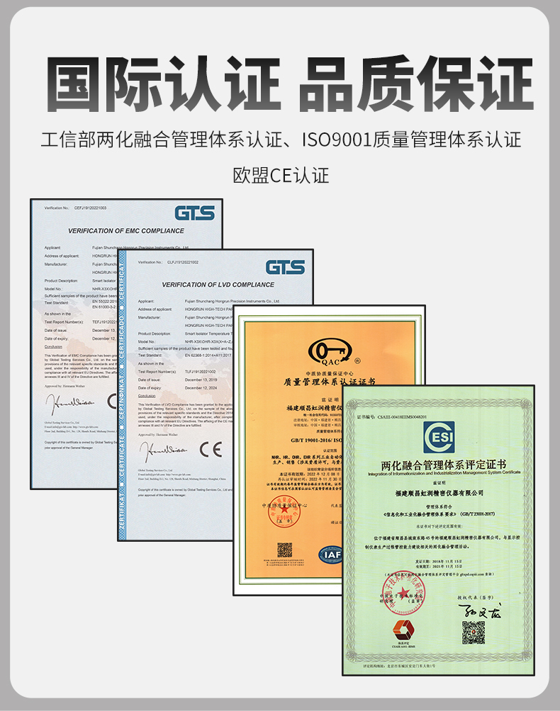 虹潤(rùn)公司是專業(yè)生產(chǎn)隔離器的國(guó)家專精特新“小巨人”企業(yè)。生產(chǎn)的導(dǎo)軌式智能隔離器 ,具有高清顯示單元,參數(shù)可設(shè)置,寬電源供電,響應(yīng)快,帶RS485通訊等特點(diǎn)。產(chǎn)品獲得信號(hào)隔離器、一種二端子模塊、無源信號(hào)隔離器等3項(xiàng)國(guó)家發(fā)明專利,主持起草現(xiàn)場(chǎng)設(shè)備工具(FDT)接口規(guī)范、工業(yè)過程測(cè)量和控制系統(tǒng)用隔離式安全柵、工業(yè)過程測(cè)量和控制系統(tǒng)用配電器等3項(xiàng)國(guó)家標(biāo)準(zhǔn),以及通信系統(tǒng)多通道數(shù)據(jù)采集控制終端規(guī)范軍用標(biāo)準(zhǔn),參與國(guó)際5G標(biāo)準(zhǔn)制定,取得智能隔離器等2項(xiàng)相關(guān)軟件著作權(quán)。產(chǎn)品廣泛應(yīng)用于電力、石化,冶金、制藥、水處理、機(jī)械配套等各種工業(yè)現(xiàn)場(chǎng)。