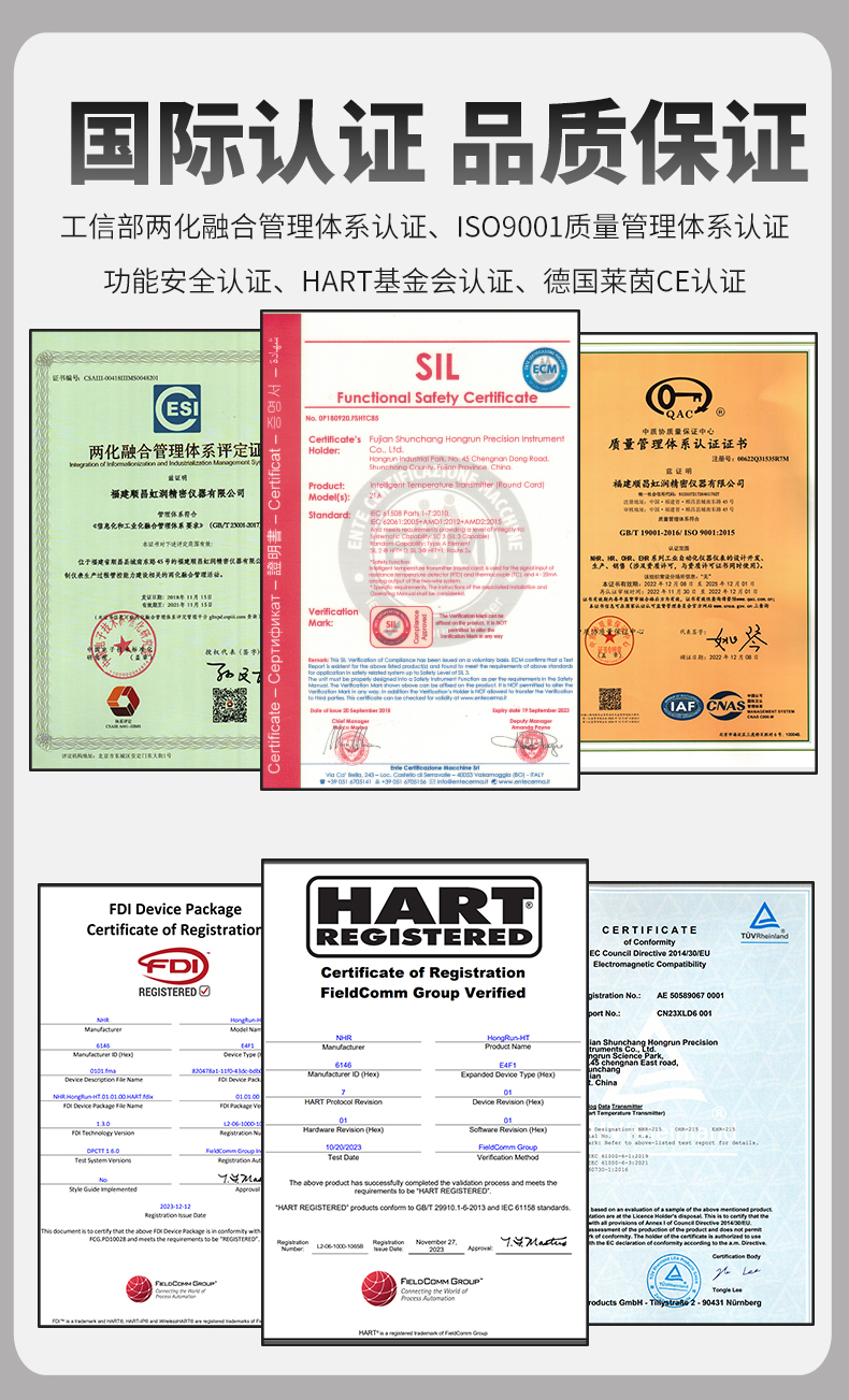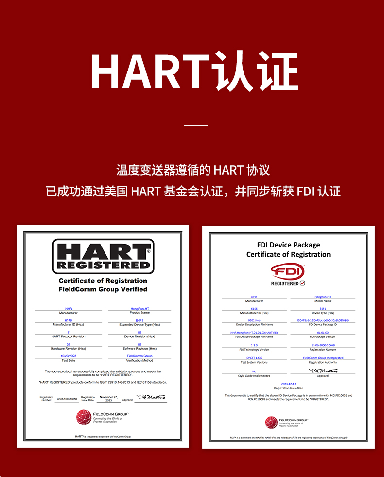 虹潤公司是專業(yè)生產(chǎn)溫度變送器的國家專精特新“小巨人”企業(yè)。生產(chǎn)的智能溫度變送器,具有適配各類溫度傳感器,精度高,通過編程線修改輸入信號類型及量程,高抗干擾,HART或485通訊等特點。該產(chǎn)品不僅通過HART基金會認(rèn)證、德國萊茵 CE 認(rèn)證與 SIL 功能安全認(rèn)證,還獲得具備減震抗干擾能力的溫度變送器、信號隔離器、一種二端子模塊、無源信號隔離器等4項國家發(fā)明專利,主持起草物聯(lián)網(wǎng)智能溫度儀表、現(xiàn)場設(shè)備工具(FDT)接口規(guī)范、工業(yè)過程測量和控制系統(tǒng)用溫度變送器等3項國家標(biāo)準(zhǔn),以及通信系統(tǒng)多通道數(shù)據(jù)采集控制終端規(guī)范軍用標(biāo)準(zhǔn),參與國際5G標(biāo)準(zhǔn)制定,取得HART溫度變送器、智能溫度變送器等3項相關(guān)軟件著作權(quán)。產(chǎn)品廣泛應(yīng)用于石油、化工、電力、冶金、制藥、食品、水處理等各種工業(yè)領(lǐng)域。