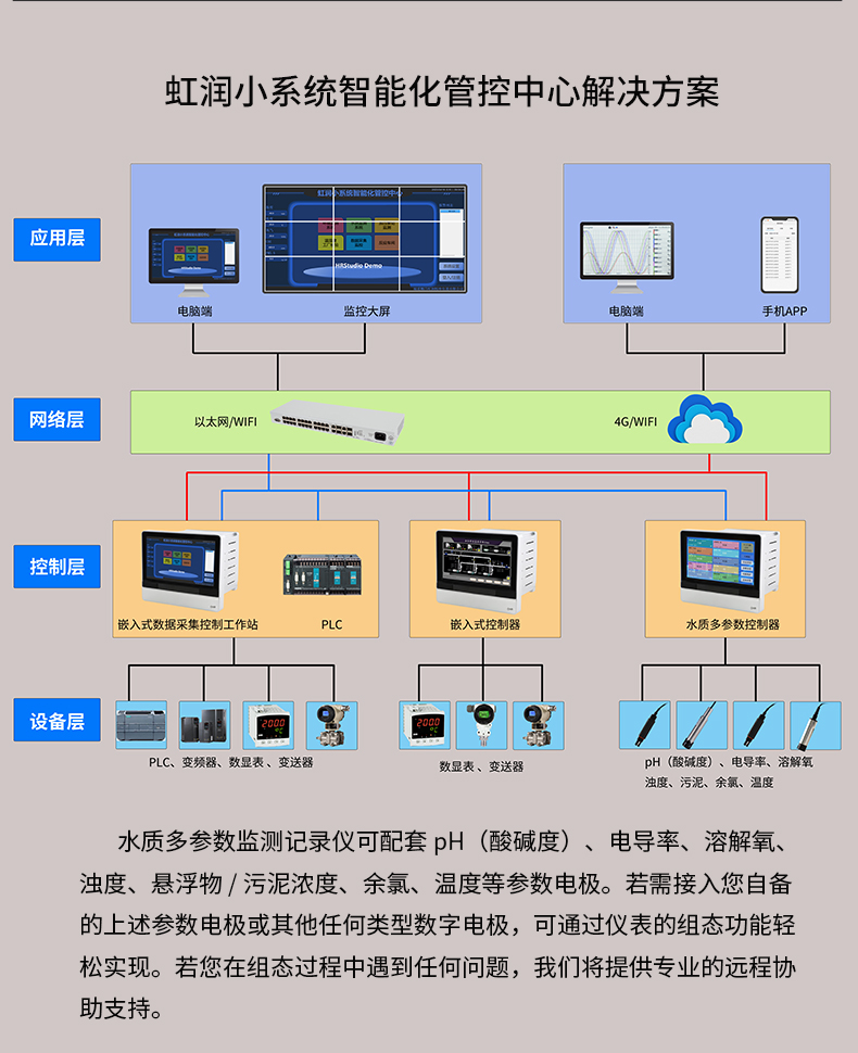 虹潤公司是專業(yè)生產水質分析儀的國家專精特新“小巨人”企業(yè)。生產的水質多參數監(jiān)測記錄儀,具有多參數采集同屏顯示,數據記錄與轉存,支持WiFi或4G實現數據云方案,內置與外配組態(tài)軟件等特點。產品獲得一種適應性強PH控制儀、嵌入式數據采集工作站、數據采集控制工作站、無紙記錄儀、智能化控制器等5項國家發(fā)明專利;主持起草通信系統(tǒng)多通道數據采集控制終端規(guī)范軍用標準,物聯(lián)網智能記錄儀表通用技術條件國家標準,以及現場設備集成等5項智能制造國家標準,參與國際5G標準制定;取得PH無紙記錄儀等7項相關軟件著作權。產品廣泛應用于實驗室、水處理、環(huán)境監(jiān)測、食品、制藥、農業(yè)、工業(yè)流程控制等諸多領域。