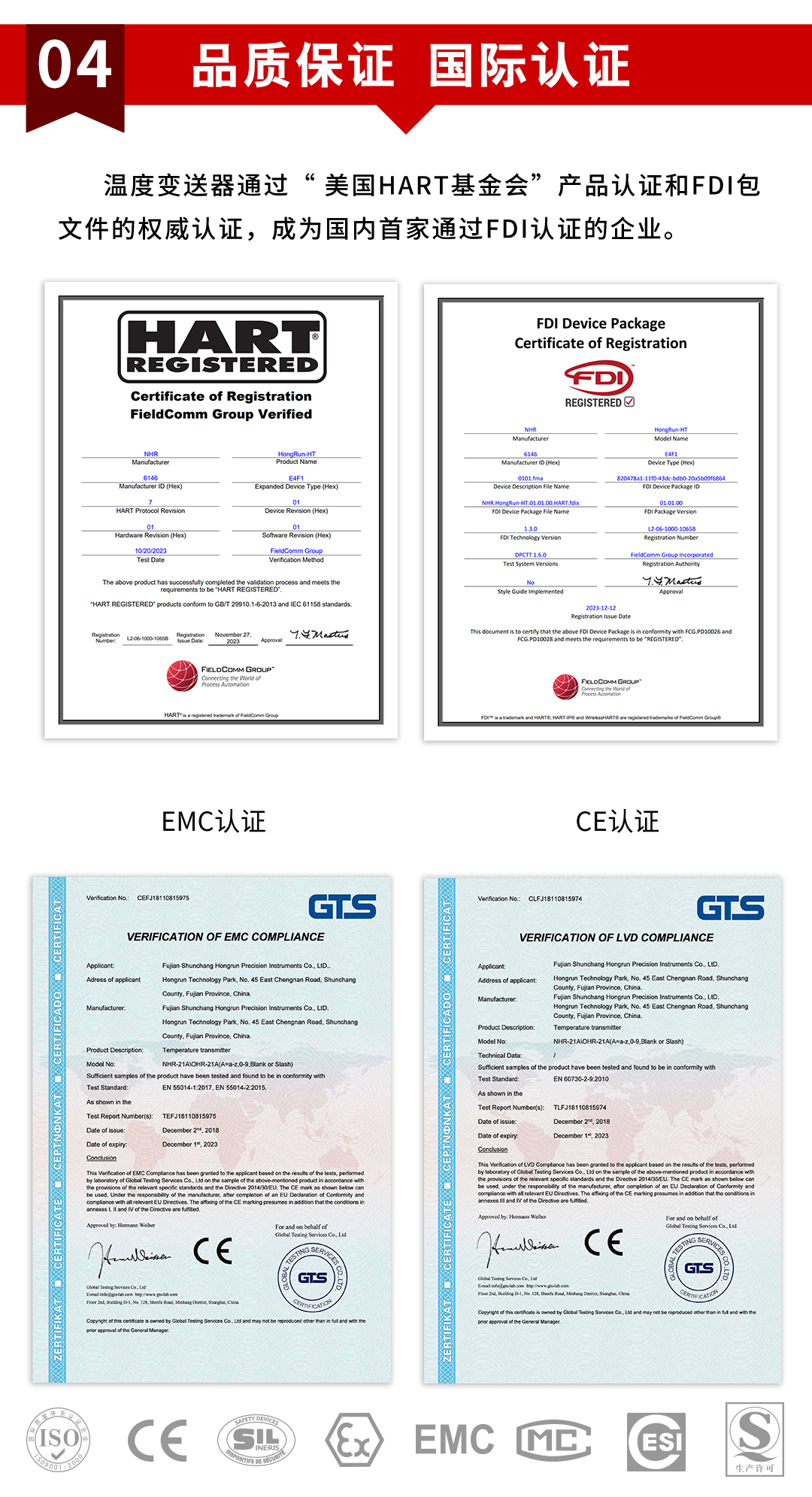 虹潤公司是專業(yè)生產(chǎn)溫度變送器的國家專精特新“小巨人”企業(yè)。生產(chǎn)的現(xiàn)場顯示隔離溫度變送器,具有可修改輸入信號類型,測量精度高,穩(wěn)定性好,帶HART或RS485通訊計等特點。該產(chǎn)品不僅通過德國萊茵 CE 認證與 SIL 功能安全認證,還獲得具備減震抗干擾能力的溫度變送器、信號隔離器、一種二端子模塊、無源信號隔離器等3項國家發(fā)明專利。主持起草物聯(lián)網(wǎng)智能溫度儀表、現(xiàn)場設備工具(FDT)接口規(guī)范、工業(yè)過程測量和控制系統(tǒng)用溫度變送器等3項國家標準,以及通信系統(tǒng)多通道數(shù)據(jù)采集控制終端規(guī)范軍用標準。參與國際5G標準制定,取得高精度溫度變送器等3項相關軟件著作權(quán)。產(chǎn)品廣泛應用于石油、化工、電力、冶金、制藥、食品、水處理等各種工業(yè)領域。